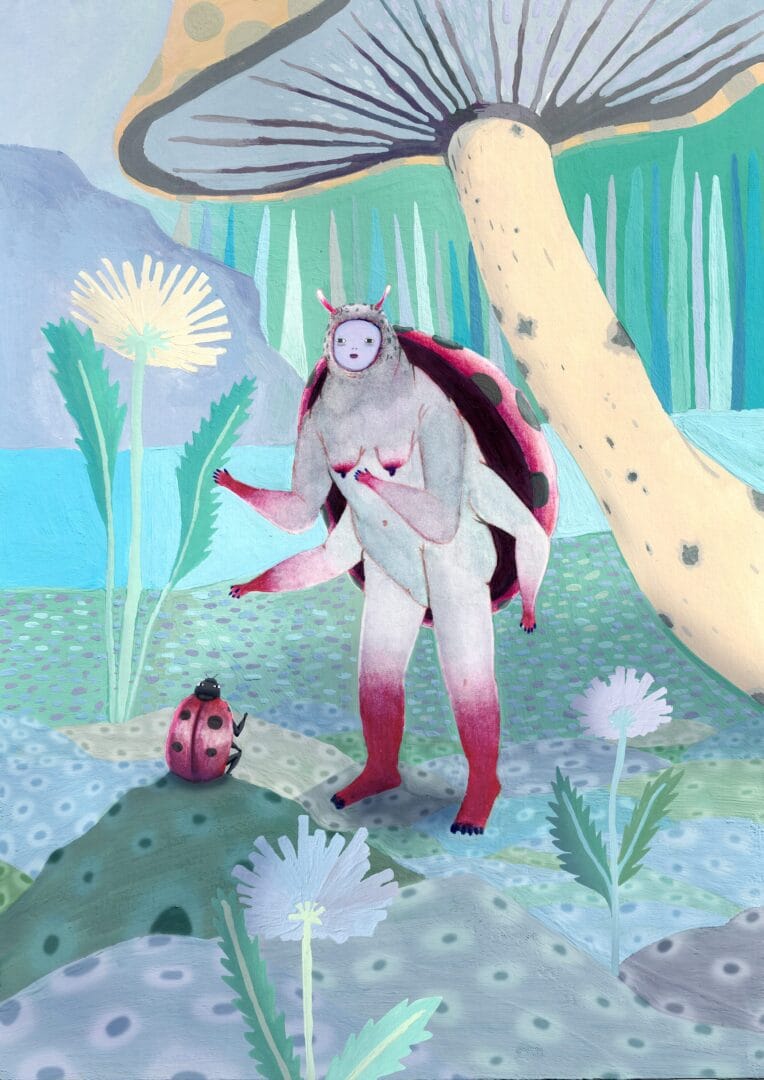 You can see these drawings in the LökZine #17 FRIDAY/VENERDÍ! The theme was Friday the 17th, which is considered an unlucky day in Italy. We could draw all sorts of things related to faith, luck, bad luck, superstitions… So, as you can see, I chose to draw a clover goddess and a ladybug goddess, and also an image related to superstitions.You can pre-order the magazine on their website. Check it out here :